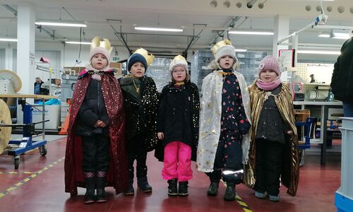 Im Namen der >>Heiligen drei Könige<< – für die am 6. Januar der Gedenktag ist – bringen sie den Segen in die Häuser. Die Weisen hatten sich aufgemacht aus fernen Ländern, um das Kind in der Krippe im Stall von Bethlehem zu finden. Sie sind wieder zurück gegangen und haben etwas mit genommen von dem Retter der Welt. Sie waren erfüllt von dem Licht, der Liebe und dem Frieden, der von diesem Kind ausging. Als Gesegnete sind sie losgezogen hinaus in die Welt.