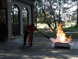 Nachdem wir im letzten Jahr etwas mehr Augenmerk auf die Theorie gelegt hatten, konnten sich in diesem Jahr die Kollegen wieder einmal selbst testen. Im Rahmen von praktischen Löschübungen mit verschiedensten Feuerlöschern konnte so der Umgang geübt und gefestigt werden. Auch gab es natürlich wieder neue Kollegen in unseren Reihen, für die diese Übung ganz besonders wichtig war.