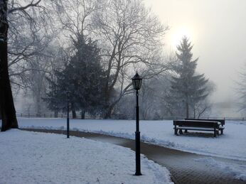 Sie zeigen unseren Park um das Gutshaus Rustow – eingekleidet im Schnee und im Eis.